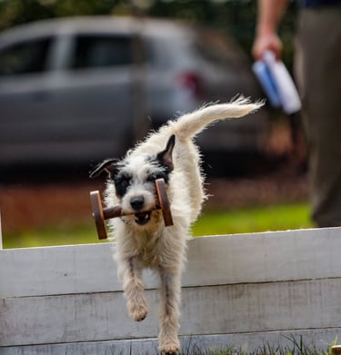 Em 2025, fui Campeão Brasileiro de Obediência FCI Classe 1, com minha cadela Juma, uma Parson Russell Terrier de 6 quilos. Prova de que não importa o porte ou a raça, com o treino certo, qualquer cão pode evoluir.